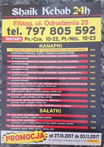 Zaraz, muszę Ci opowiedzieć o Shaik w Elblągu! To taki lokal, który trochę krzyczy „kebab”, a jednocześnie wpada w ucho. Znajdziesz go na alei Odrodzenia 25. No, powiem szczerze, miejsce nie jest perfekcyjne, ale jakoś ma to „coś”.