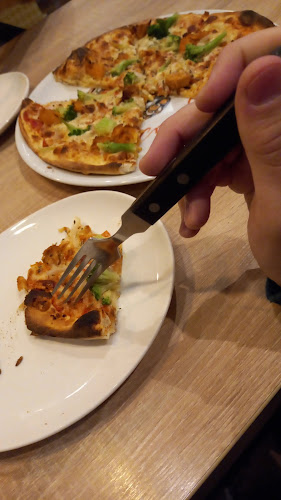 Pierwsze chwile? Przepiękne wnętrze, delikatne światło, a do tego uśmiechnięta obsługa. 1620 recenzji, nie dziwi mnie to! 4.4 na 5 to niezły wynik. Zamówiłyśmy średnią pizzę i muszę powiedzieć, że ciasto było cienkie i chrupiące. Ah, smakowało jak niebo w gębie!